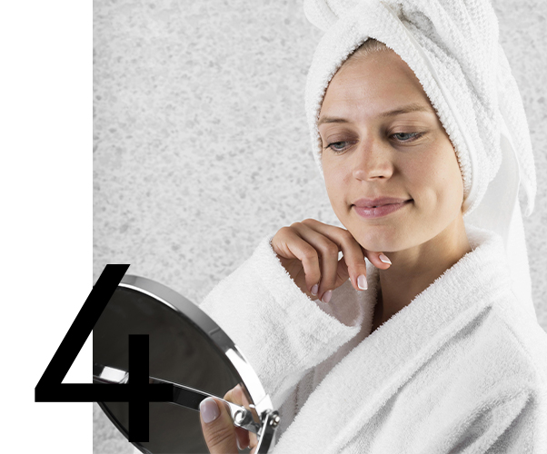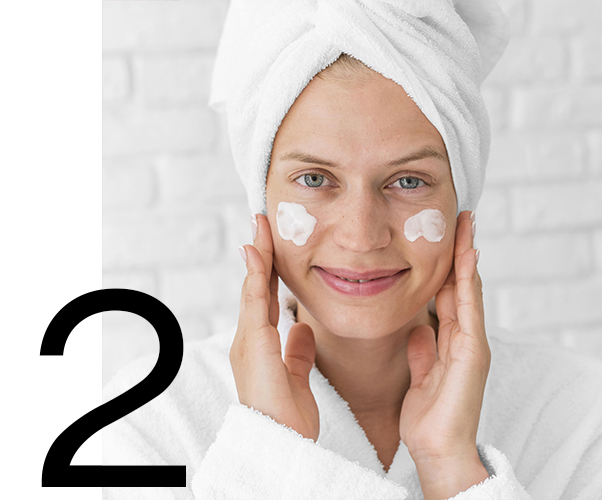 Aplique uma pequena quantidade sobre o rosto, pescoço e colo.
