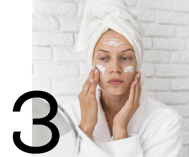 Sobre a pele limpa e seca, após o uso do gel de limpeza de sua preferência.
