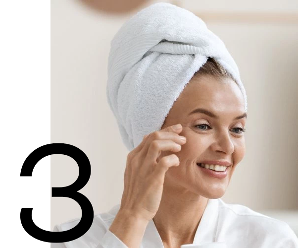 Aplique de 3 a 4 gotas sobre o rosto, pescoço e colo.
